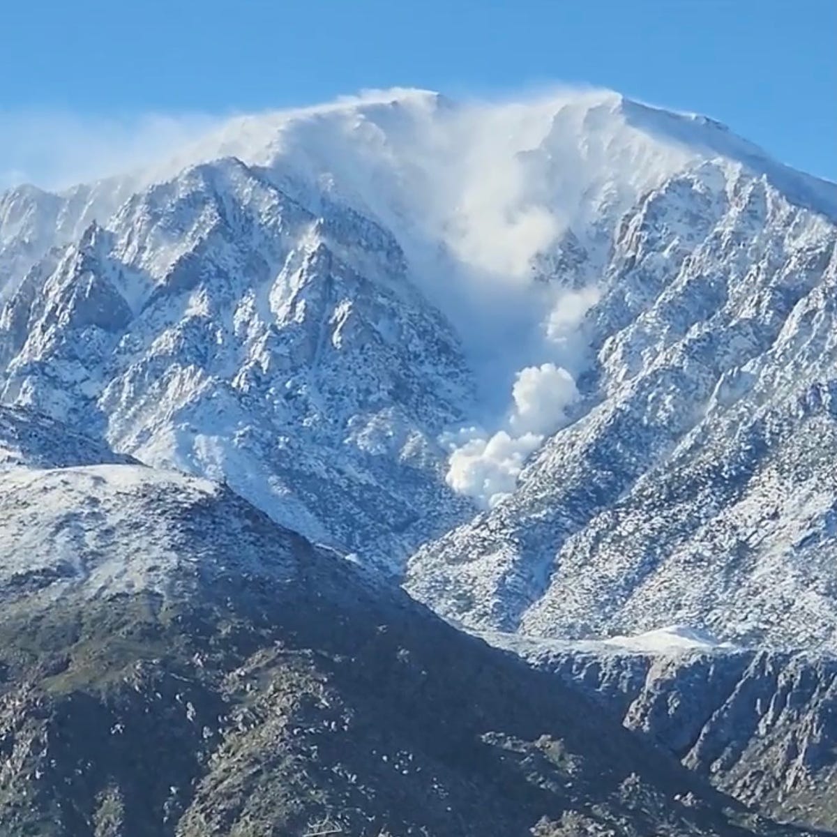 Southern California Blizzard Avalanche On Mountain Above Palm Springs