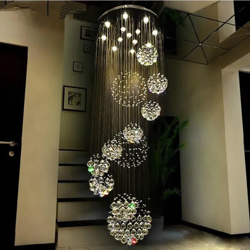 Modern Large Crystal Chandelier Light Rain Drop Crystal Sphere Ceiling Light Fixture Long Crystal Stair Lamp Flush Mounted Stairs Lights From 391 88 Dhgate